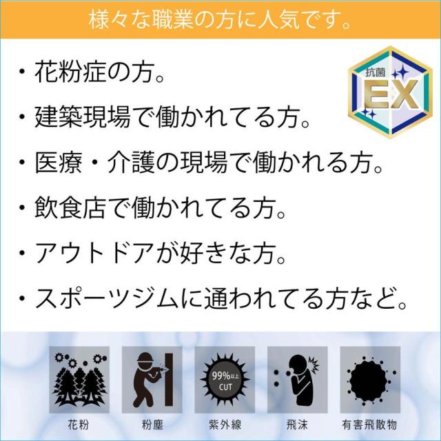 チリや埃、花粉・粉塵・ウィルス・飛沫などの侵入から大切な目を守ってくれます。