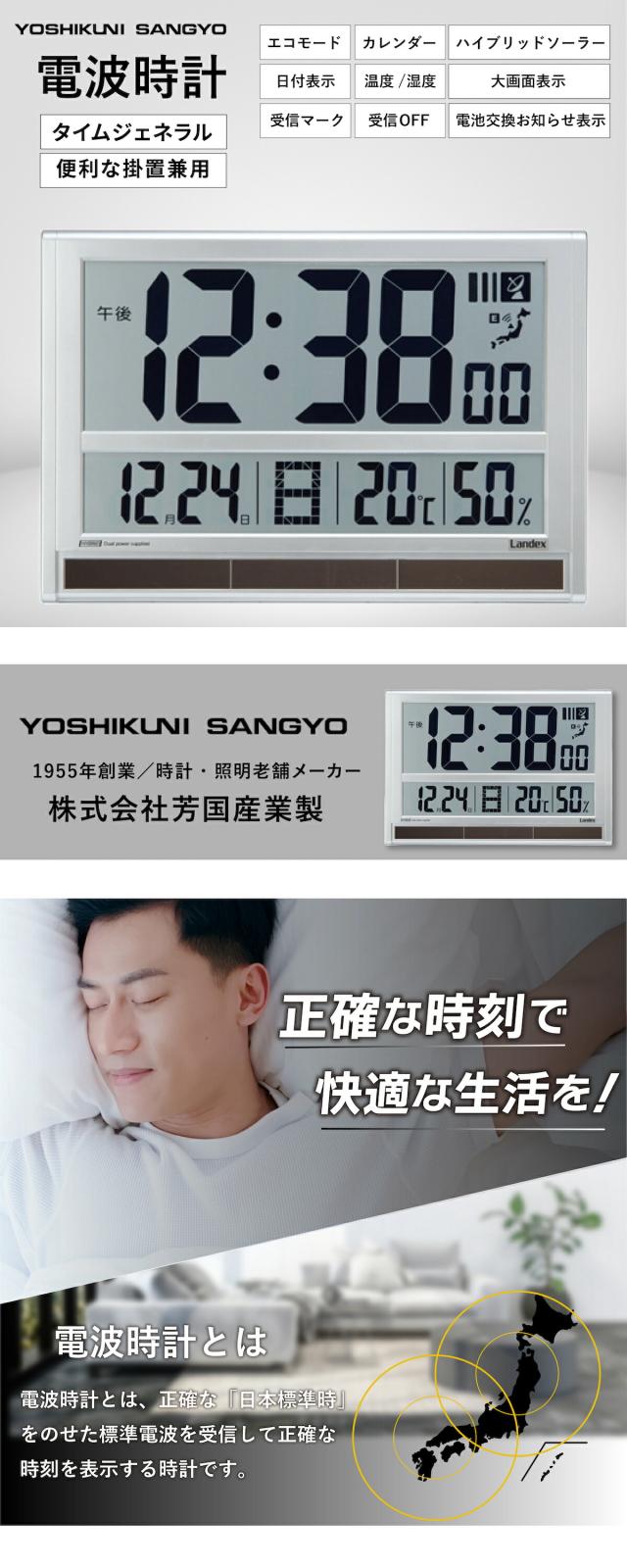 大きく 見やすい 電波時計 タイムジェネラル ランデックス ホワイト ワイド 大きい 置時計 掛け時計 置き掛け兼用 LANDEX YW9088WH 送料無料