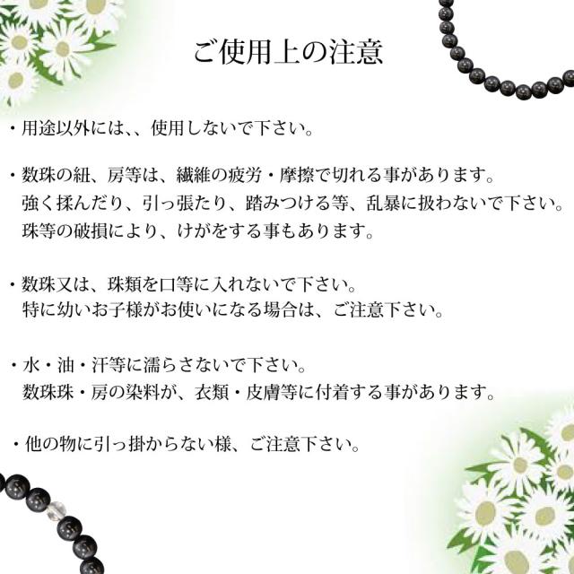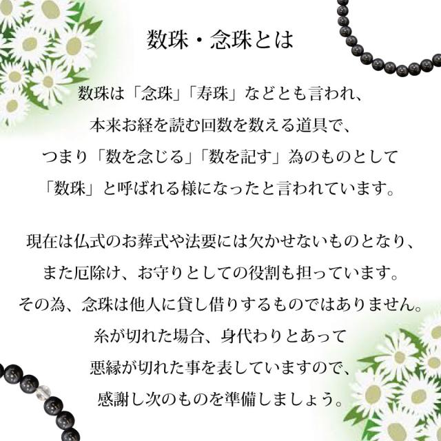 数珠を持つ事で、持ち主の身を守る冥加(みょうが:神仏のたすけ、おかげ)を得るとされています。