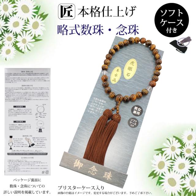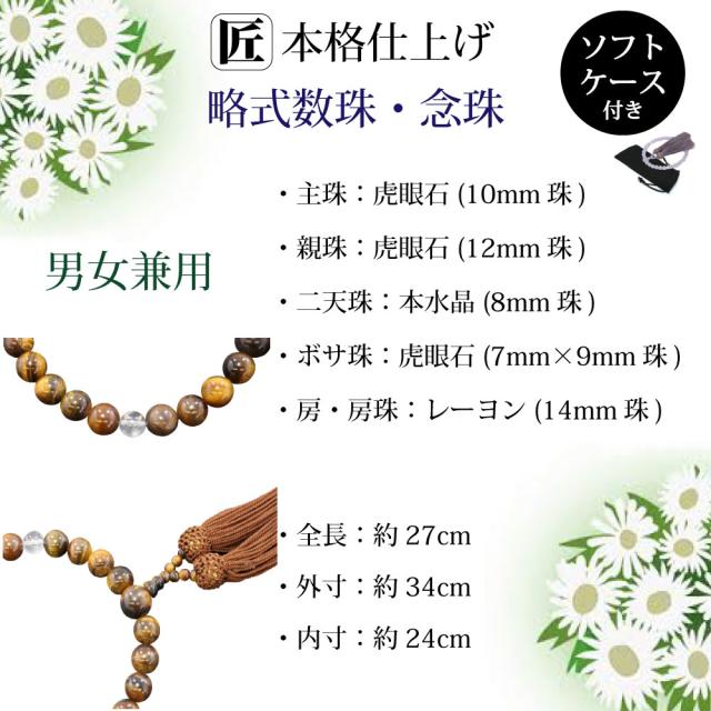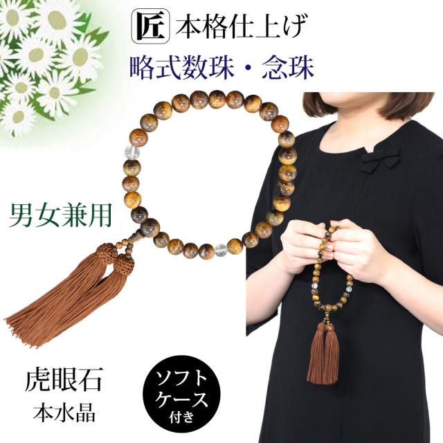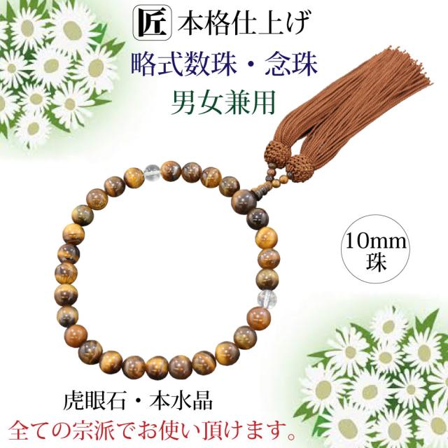 数珠 男性用 女性用 男女兼用 念珠 略式数珠 10mm 本水晶 虎眼石 タイガーアイ クリア 葬式 葬儀 法事 お盆 お彼岸 法要 数珠入れ 全宗派対応