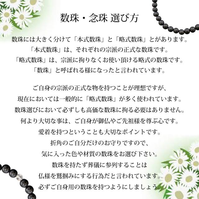 厳選された素材と細部にまで作りにこだわった、本格派の略式数珠・念珠です。