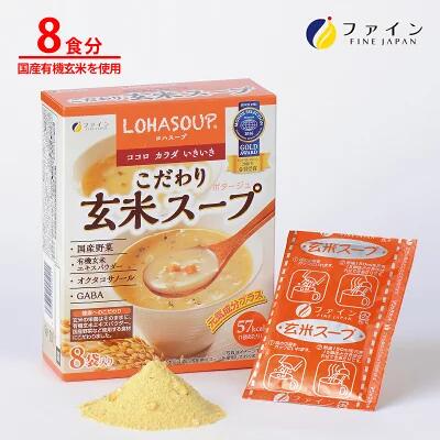玄米スープ 国産有機玄米 使用 8食入 栄養 バランス 朝食 夜食 玄米 エキス ファイン アミノ酸 ミネラル オクタコサノール 食物繊維 ダイエット サポート 粉 粉末 パウダー 非常食 保存食 レトルト インスタント GaBa たんぱく質