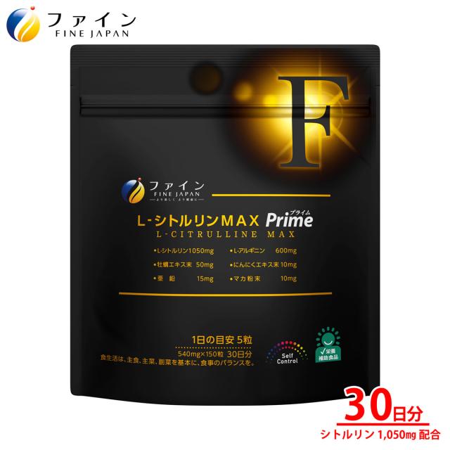 ファイン L-シトルリンMAX Prime 30日分 ハードカプセル(ベジカプセル) L-シトルリン 1050mg L-アルギニン 600mg 牡蠣エキス末 ニンニクエキス末 マカ粉末 配合 精力的で満足感のある日々へ 活力アップをサポート