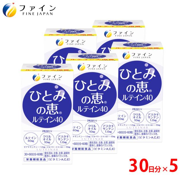ルテイン サプリ ファイン ひとみの恵 30日分 × 5個 濃い アスタキサンチン ゼアキサンチン クリルオイル ビルベリーエキス 末 ビタミン マリーゴールド ブルーライト アイケア デジタルケア パソコン スマホ サプリ フリー体