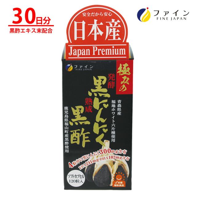 ファイン極みの発酵黒にんにく黒酢 黒酢エキス 末 黒酢 もろみ粉末 配合 30日分(1日4粒/120粒入) ビタミンB1 EPA DHA アミノ酸 栄養 成分 ファイン