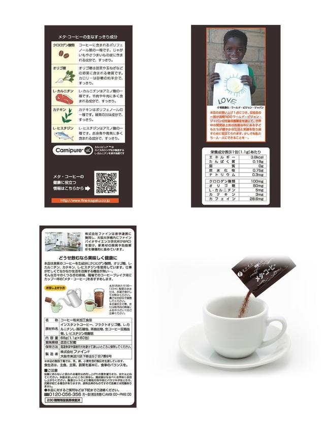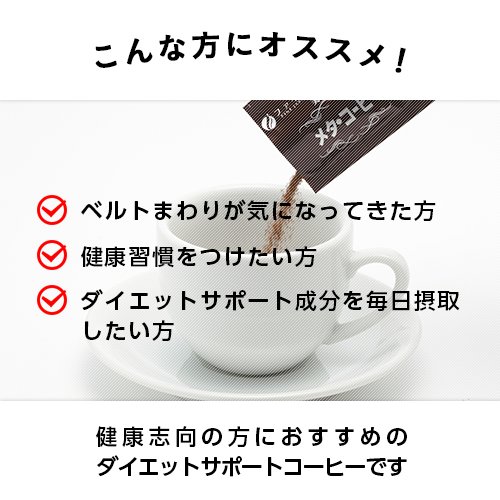 商品 メタ ・ コーヒー 60杯 クロロゲン酸 類 100mg オリゴ糖 50mg ブラックジンジャー抽出物 5mg配合 60杯分/簡易包装(箱なし) 約2ヶ月分 ダイエット サポート ダイエットコーヒー 健康食品 カテキン 満足感 ファイン