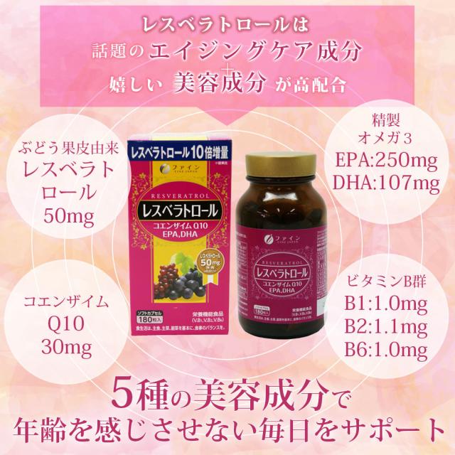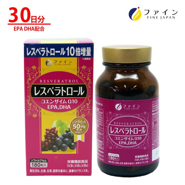 レスベラトロール EPA DHA コエンザイム Q10 配合 30日分(1日6粒/180粒入) ポリフェノール エイジングケア 素材 健康 美容 ダイエット ビタミンB1 ビタミンB2 ビタミンB6ファイン