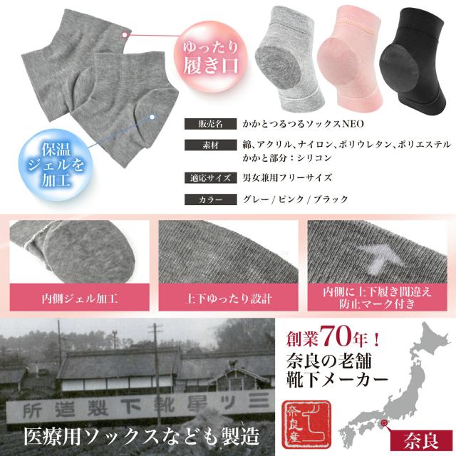 かかとつるつるソックス ネオ 靴下 踵 かかと ひび割れ ケア 乾燥 ガサガサ しっとり つるつる すべすべ 潤い 保湿 角質 日本製 国産