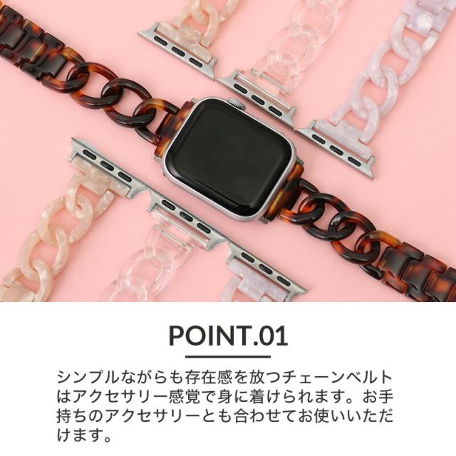 アップルウォッチ クリア バンド クリアバンド 透明バンド べっ甲 チェーン レディース Apple Watch シリーズ 7 SE 6 5 4 3 2 1 対応 38 40 41 mm ミリ applewatch 女性 アップル 替えベルト 交換用 ベルト 人気 ブランド おしゃれ かわいい 華奢 個性的 ブラウン ピンク