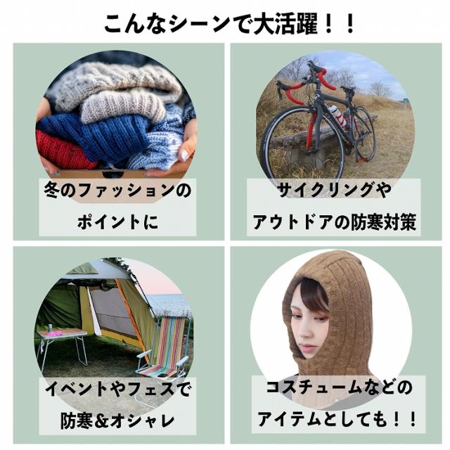 このバラクラバ ニット ネックウォーマーは、チクチクしない素材(アクリル)で作られており、寒い季節にぴったりのアイテムです。