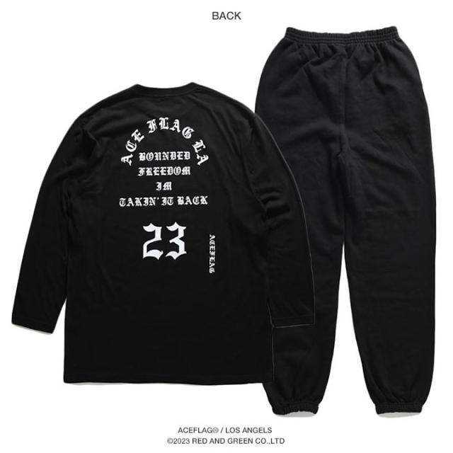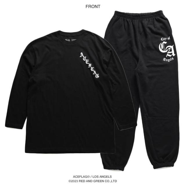 ACEFLAG 上下セット 長袖 ブランド メンズ 春秋冬用 黒 大きいサイズ エースフラッグ セットアップ ロンT スウェットパンツ 上下 コーデセット ロサンゼルス 英字 数字 b系 ヒップホップ ファッション AF-SE-LT-014