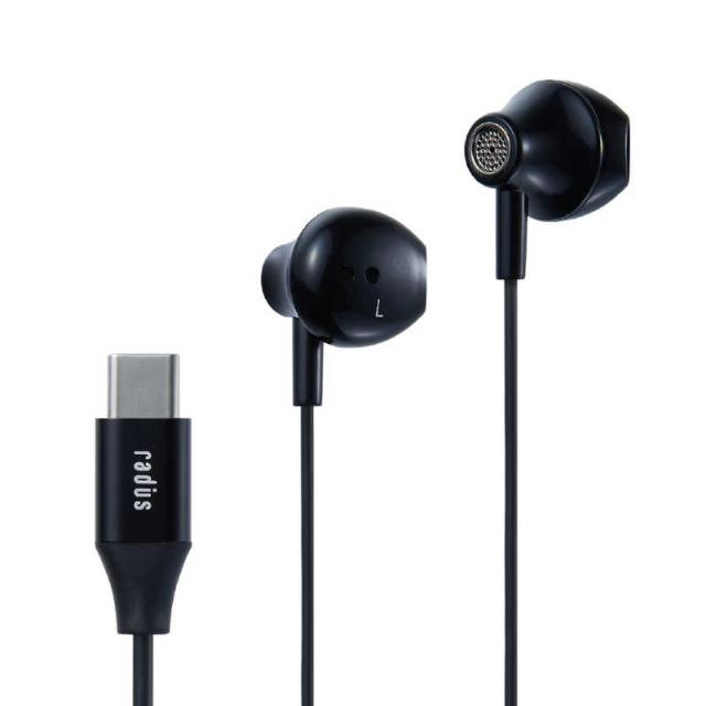 ラディウス TypeC直結 イヤホン ブラック リモコン・マイク対応 HP-NEL12CK