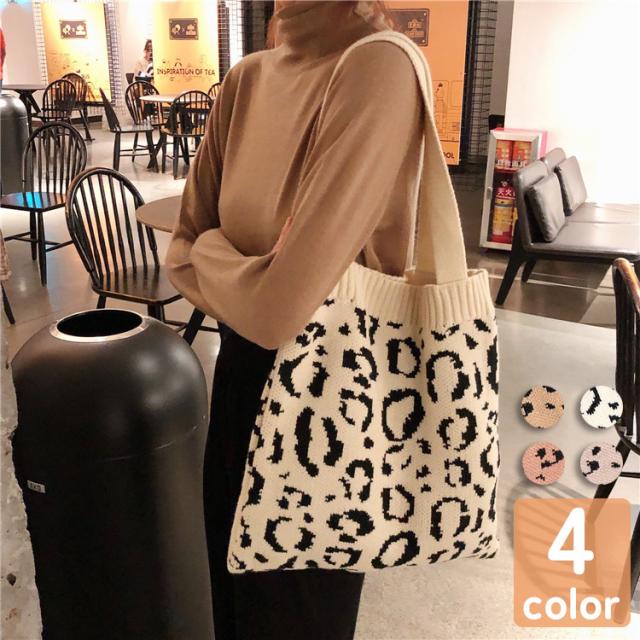 トートバッグ レディース 女性用 鞄 カバン ニット 豹柄 ヒョウ柄 アニマル柄 片掛け お出かけ お買い物 おしゃれ