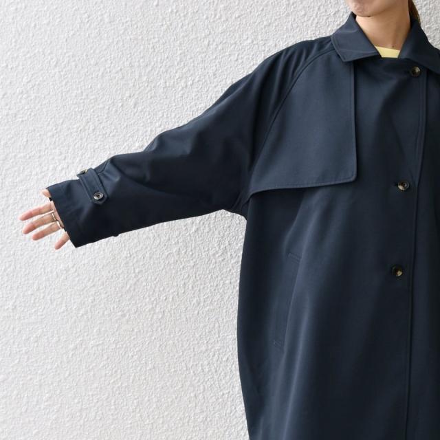 硬くなりがちなトレンチコートをポリエステル混の程よくしなやかな素材を使うことでレディなコートに仕上がっています。