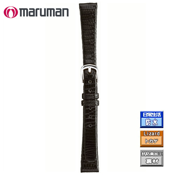 時計バンド 時計ベルト リザード トカゲ 時計際幅 13mm 美錠幅 9mm 黒 表材へり返し加工 バネ棒2本付き ネコポス便対応品