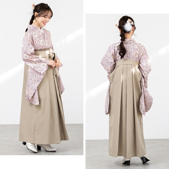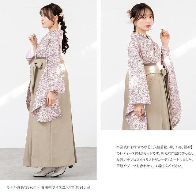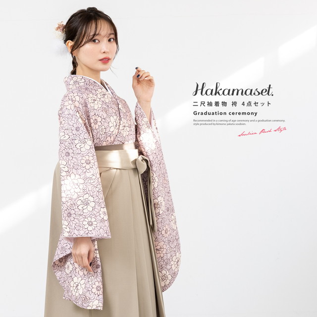 袴セット 卒業式 大学生 小学生 レディース グレーパープル 薄紫系 ピンク 花唐草 花柄 ベージュ 袴4点セット 和装 着物セット 販売 購入 送料無料