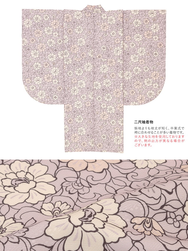 ※着物の柄部分は大きな生地を使用して作られておりますので、色や柄の出方、模様の配置等が画像と異なる場合がございます。