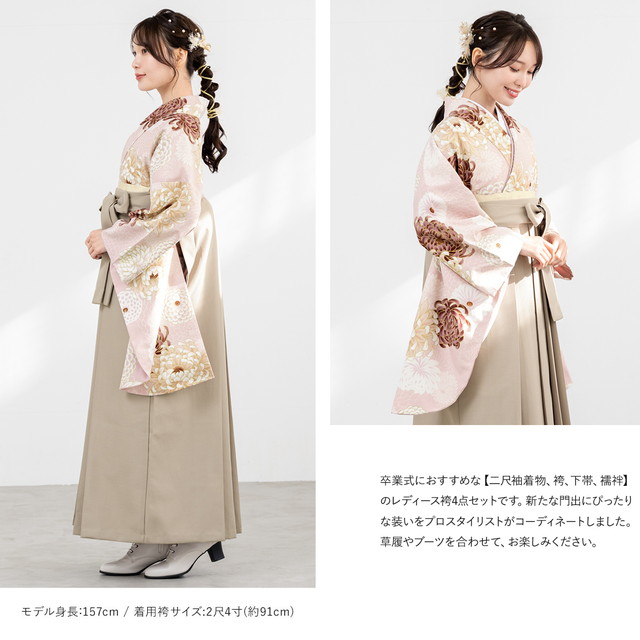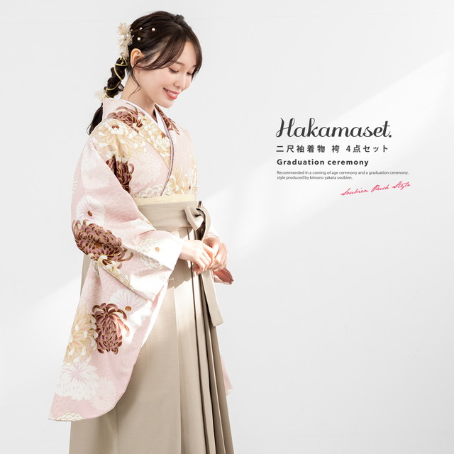袴セット 卒業式 大学生 小学生 レディース ピンク系 菊づくし 花柄 ベージュ 袴4点セット 和装 着物セット 販売 購入 送料無料