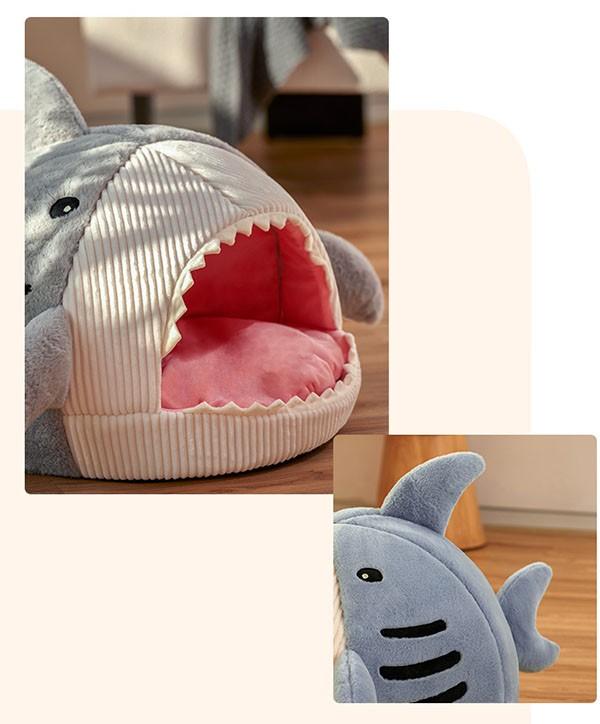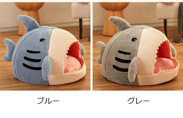 猫ベッド 犬ベッド ペットベッド ネコ ウサギ ふわふわ あったか ペットクッション かわいい ドーム サメ ペット用品 ハウス 寝具 柔らかい 寝心地 インテリア おしゃれ ブルー グレー ec091t2