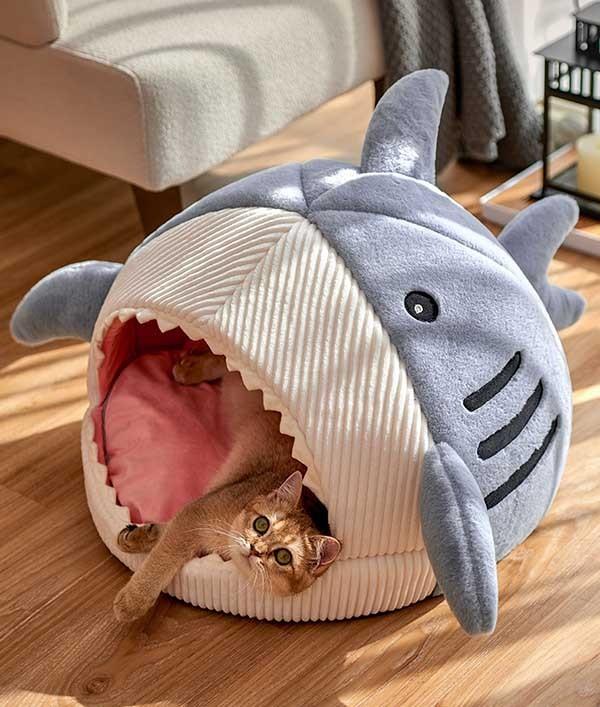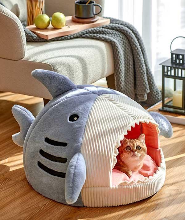 猫ベッド 犬ベッド ペットベッド ネコ ウサギ ふわふわ あったか ペットクッション かわいい ドーム サメ ペット用品 ハウス 寝具 柔らかい