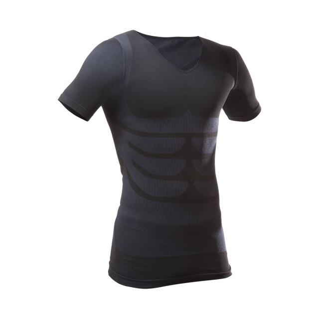 胸部を囲うように配置した着圧のラインが、胸板のシルエットを強調しながら引き締めます。