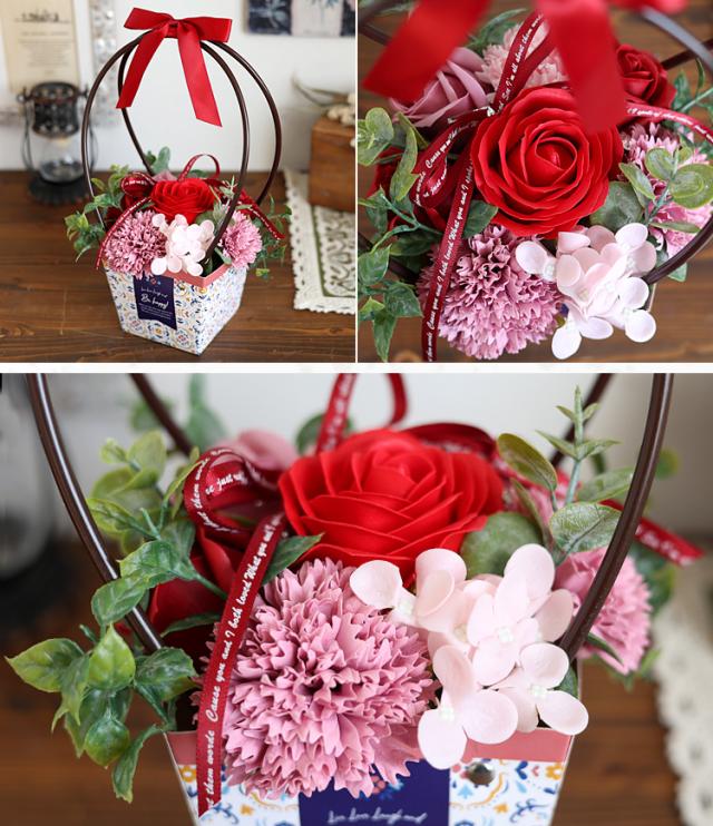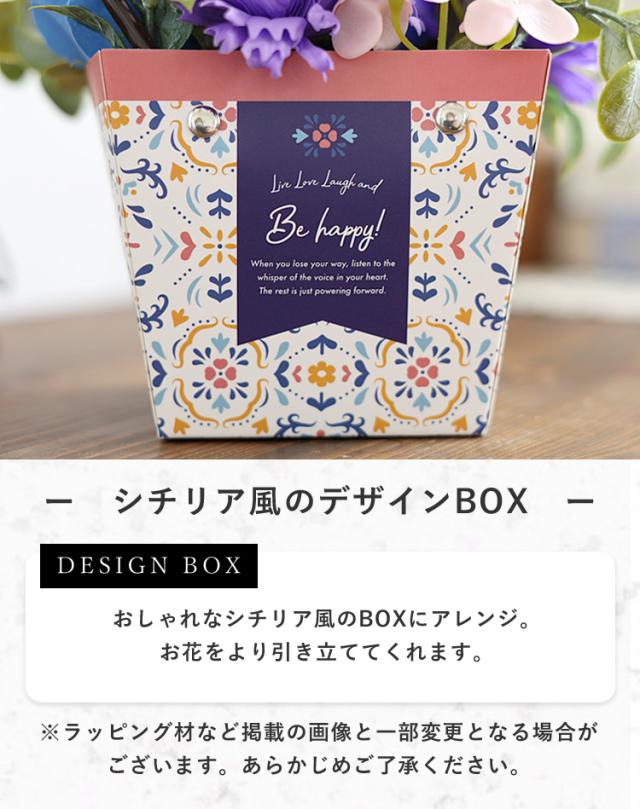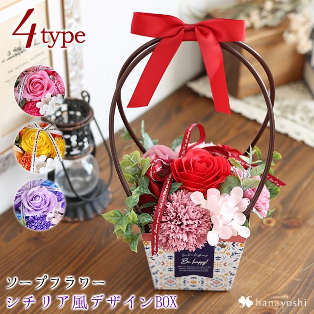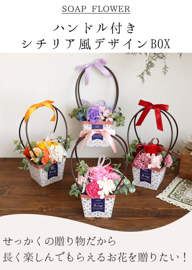 即日発送対応 ソープフラワー ハンドル付きシチリア風デザインBOX 選べる4カラー ボックスアレンジ バラ 花 誕生日 プレゼント 女性 女友達 母 結婚祝い フラワーギフト おしゃれ お誕生日 結婚記念日 妻 発表会 贈り物 お歳暮 冬ギフト クリスマス いい夫婦の日