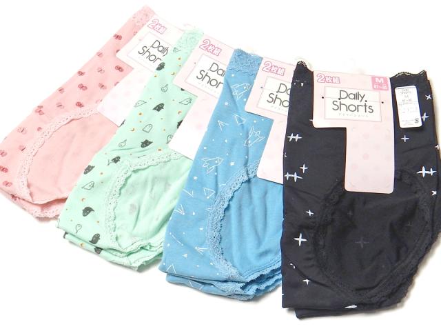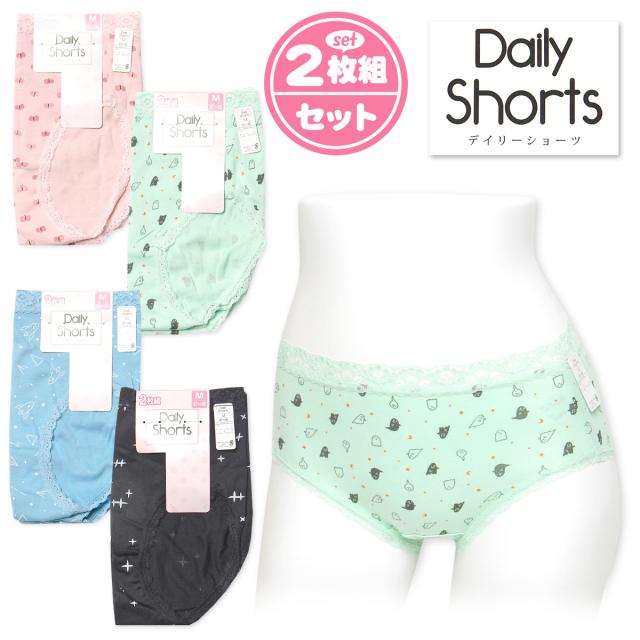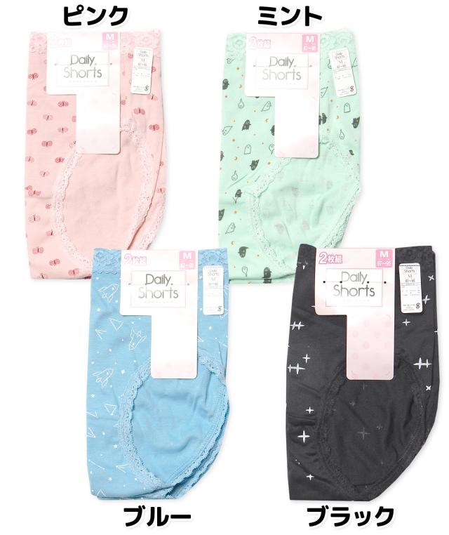 【送料無料】2枚組セット 婦人 レディース ショーツ 綿混素材 伸縮性 総柄 レース 肌着 下着 インナー M L LL yg-1706【メール便対応】