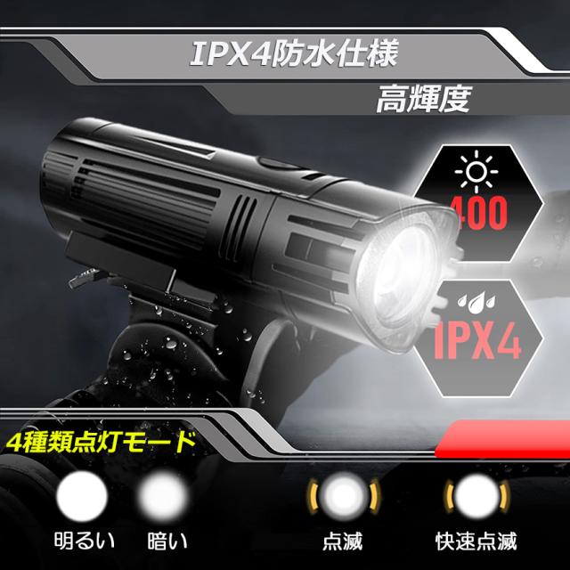 【USB充電式】: USB 充電式自転車、ヘッドライト用の内蔵 2000mAh 充電式リチウム電池、テールライト用内蔵 330mAh 充電式リチウム電池。【4つのライトモード】: ヘッドライトとテールライトは、ワンタッチスイッチで好みに応じて4つの異なる照明モードを備えています。