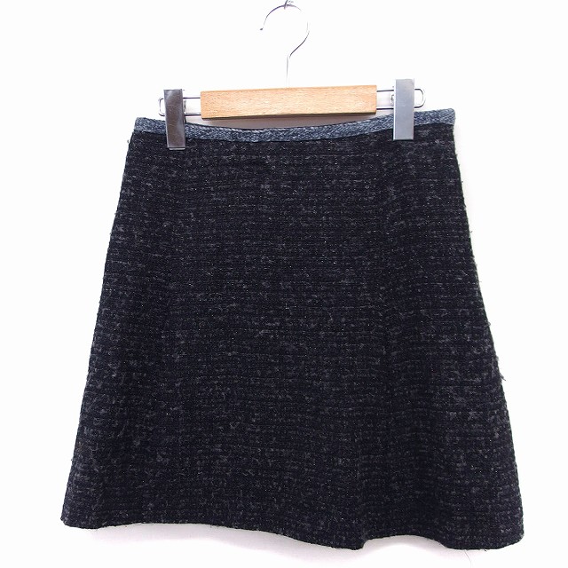 【中古】ロペ ROPE 台形スカート フレア ミニ 柄 ラメ混 ウール混 7 ブラック 黒 /FT27 レディース