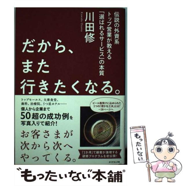 商品名:【中古】 だから、また行きたくなる。 伝説の外資系トップ営業が教える「選ばれるサービス」 / 川田 修 / ダイヤモンド社 [単行本(ソフトカバー)]【メール便送料無料】