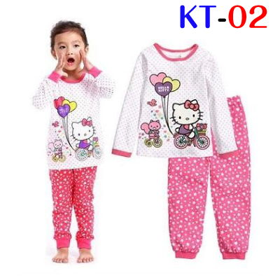 送料無料 子供パジャマ 男の子 女の子 プリントキッズ 子供服 ジュニア こども 上下セットルームウェア パジャマ 長袖&長ズボン (キティ) 90cm〜130cm 薄手綿100% 春用 秋用 冬用