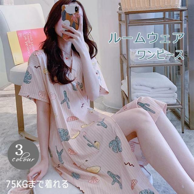 ルームウェア 夏 レディース ワンピースルームウェア 半袖 ルームウェア夏ワンピー パジャマ ナイトウエア 部屋着 上下セット リラックスリブ 半袖 vネック 大人可愛い リブ 寝間着 母の日 プレゼント ギフト 大きいサイズ 春夏