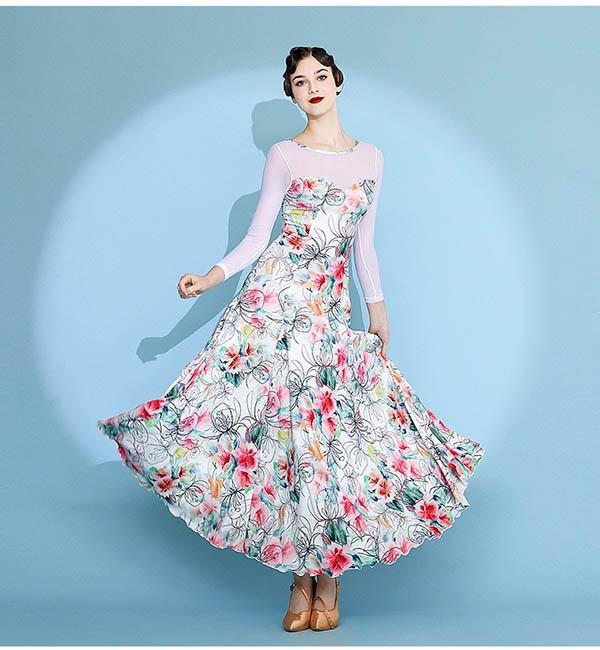 【送料無料】社交ダンスドレス 広がる裾 競技用ドレス ダンス衣装 ダンスウェア ステージ衣装 大きいサイズ カラオケ スタンダード ドレス ワルツ