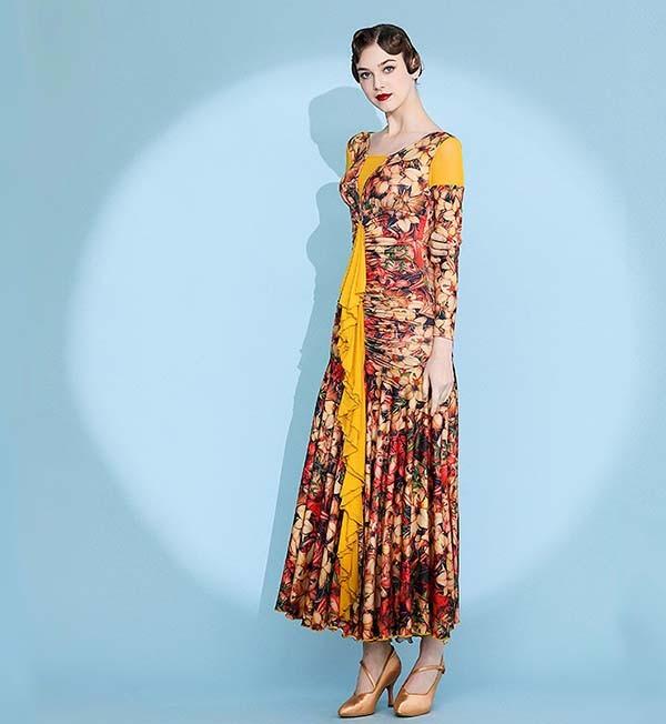 【送料無料】社交ダンスドレス 広がる裾 競技用ドレス ダンス衣装 ダンスウェア ステージ衣装 大きいサイズ カラオケ スタンダード ドレス ワルツ