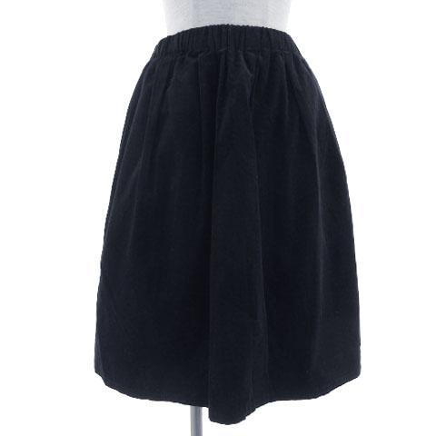 【中古】未使用品 テチチ Te chichi スカート 台形 ギャザー コーデュロイ ひざ丈 ウエストゴム ネイビー 濃紺 M