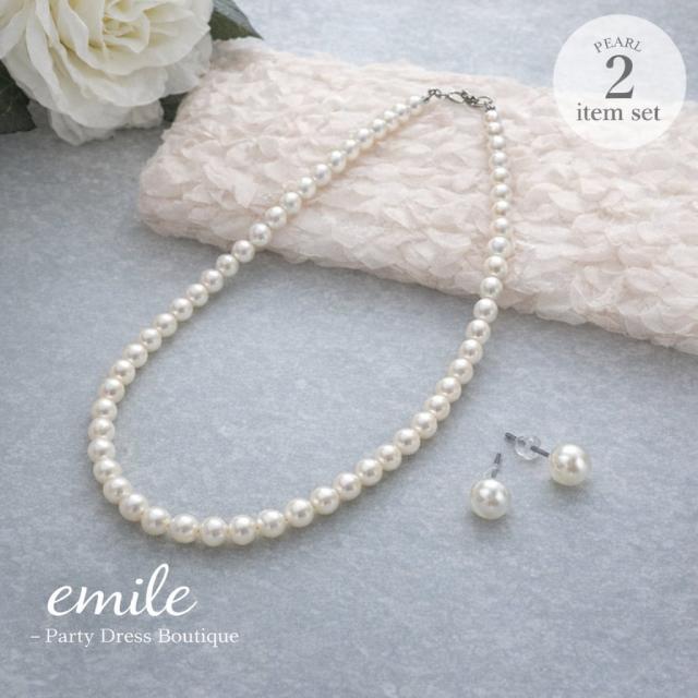 2点セット ピアス パールネックレス 結婚式 冠婚葬祭 華奢 パール ネックレス アクセサリー イヤリング セット ロング フォーマル emile0193