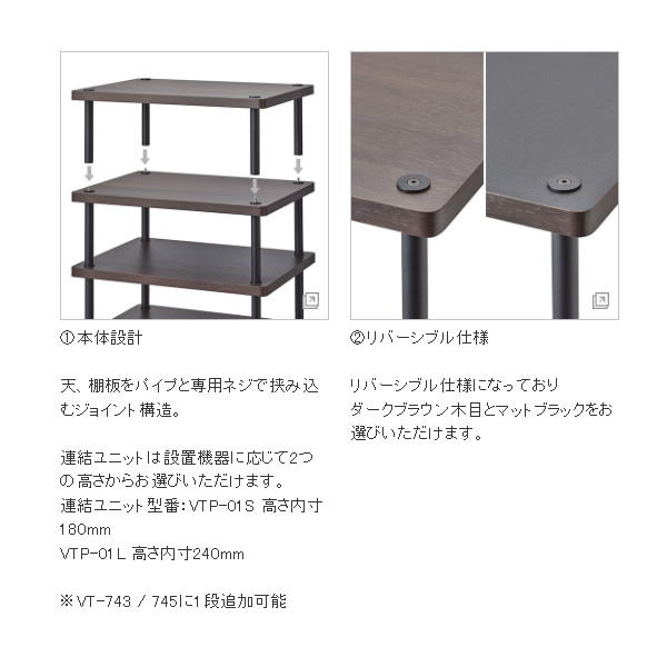 連結ユニット オーディオラック オプション 高さ26.6cm ハヤミ工産(HAMILeX) VTP-01L