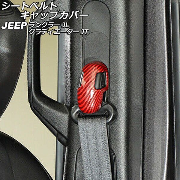 シートベルトキャップカバー ジープ グラディエーター JT 2021年11月〜 レッドカーボン ABS製 入数:1セット(4個) AP-IT2552-RDC