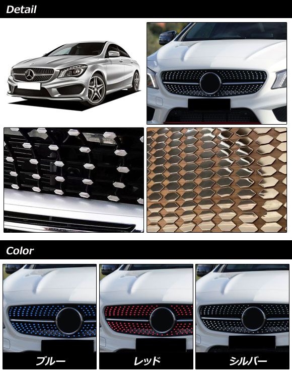 フロントグリルガーニッシュ メルセデス・ベンツ CLAクラス C117 2016年08月〜2019年08月 ブルー ステンレス製 AP-XT1944-BL