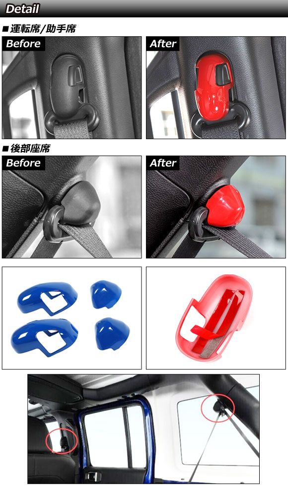 シートベルトキャップカバー ジープ ラングラー JL20L/JL36L/JL36S 2018年10月〜 オレンジ ABS製 入数:1セット(4個) AP-IT2552-OR