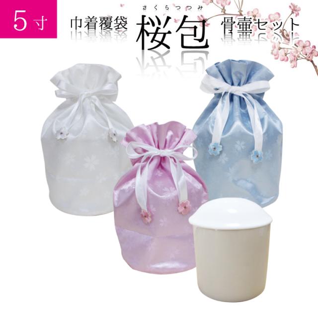 骨袋 骨壷セット 巾着 骨壷カバー 桜包 さくらつつみ 5寸 白並 白 骨壺つき カバー 覆袋 仏具 仏壇 骨壷 骨壺 骨壷カバー 49日 後飾り お悔やみ 供養 犬 猫 ペット供養にも ペットロス