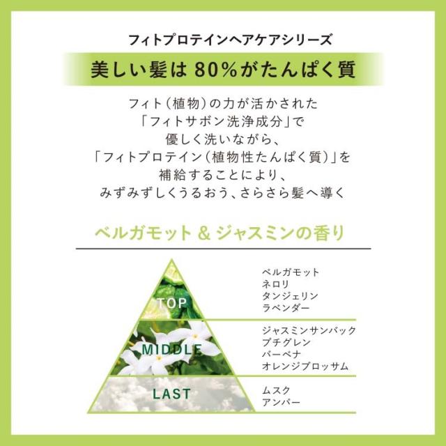 ●フィトプロテイン(植物性たんぱく質)配合。日常のダメージによって空洞化している髪に吸着することで隙間を埋めて補修し、うるおいと輝きのある髪へ導くシャンプーとトリートメント。