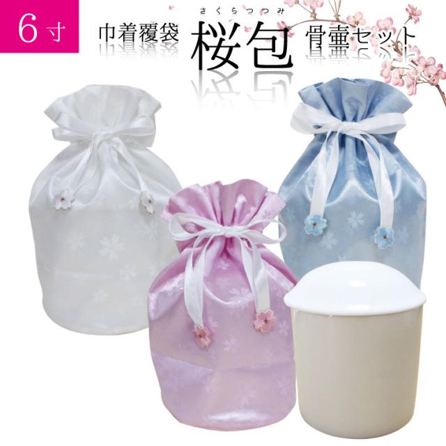 骨袋 骨壷セット 巾着 骨壷カバー 桜包 さくらつつみ 6寸 白並 白 骨壺つき カバー 覆袋 仏具 仏壇 骨壷 骨壺 骨壷カバー 49日 後飾り お悔やみ 供養 犬 猫 ペット供養にも ペットロス
