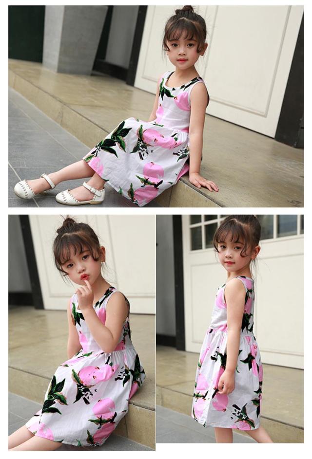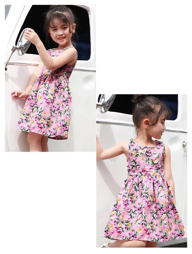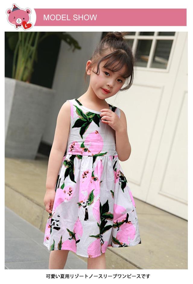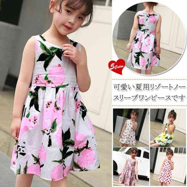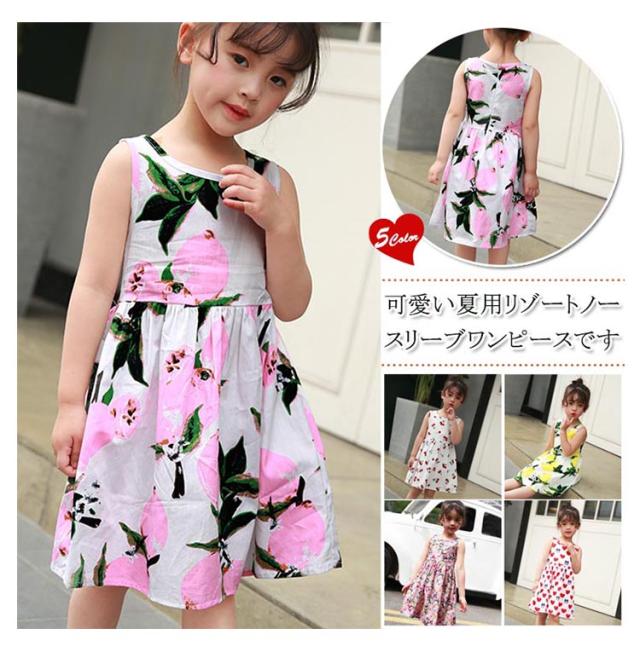 ミニワンピース キッズ ガールズ 子供服 ノースリーブ 半袖 フレアワンピース バックリボン カジュアル 花柄 サクランボ 女の子 ジュニア 夏用
