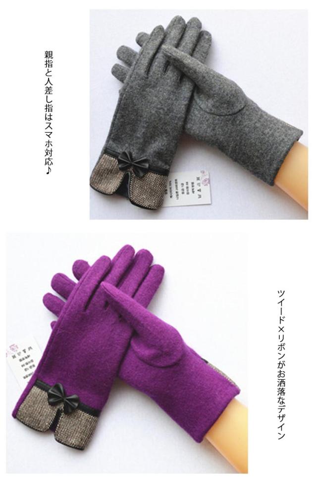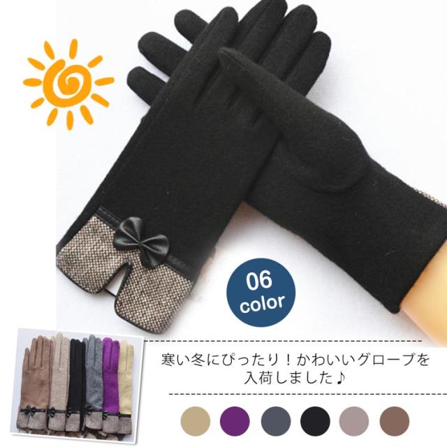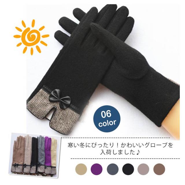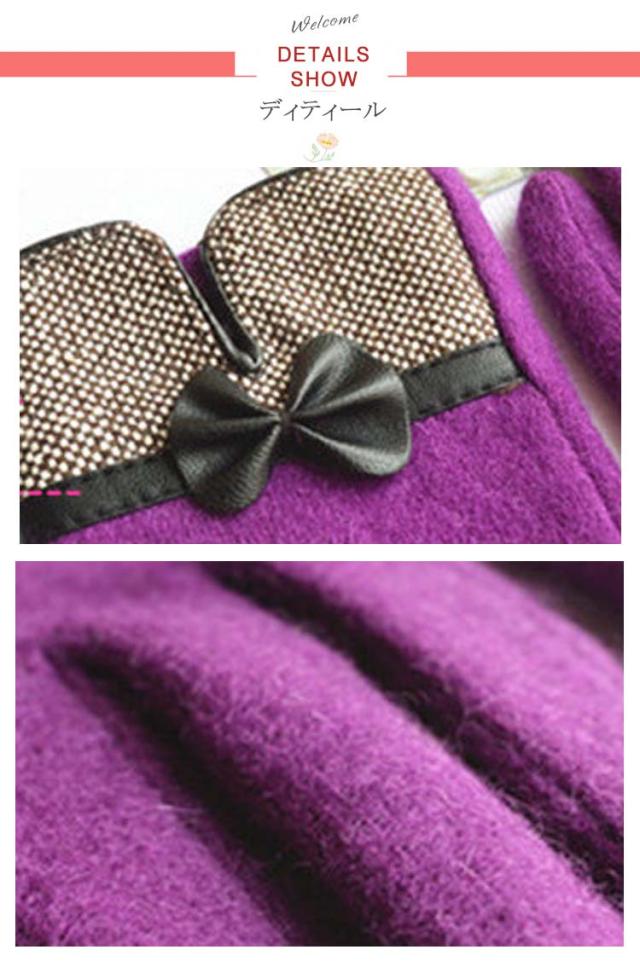 手袋 レディース スマホ手袋 暖かい 薄手 かわいい 革 黒 スマートフォン対応 タッチパネル対応 紫 パープル 冬 リボン PU レザー グローブ 雑貨 オシャレ 防寒 自転車 ブラウン ベージュ パーティー プレゼント 合皮 アクリル ツイード 通勤 通学?
