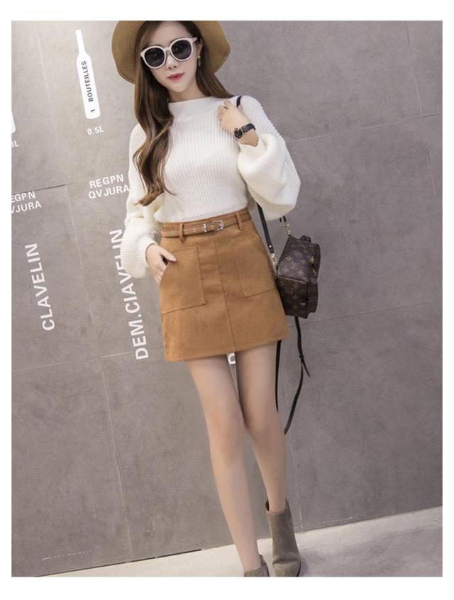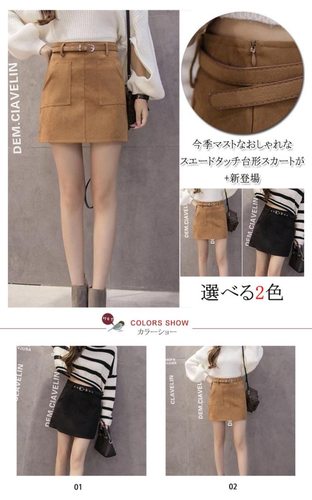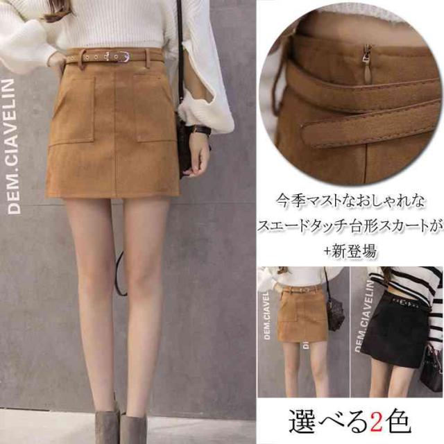 台形スカート レディース ミニスカート タイト 秋冬 ハイウエスト Aライン ベルト付き