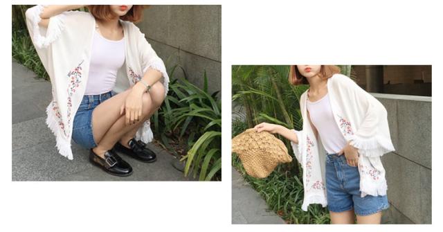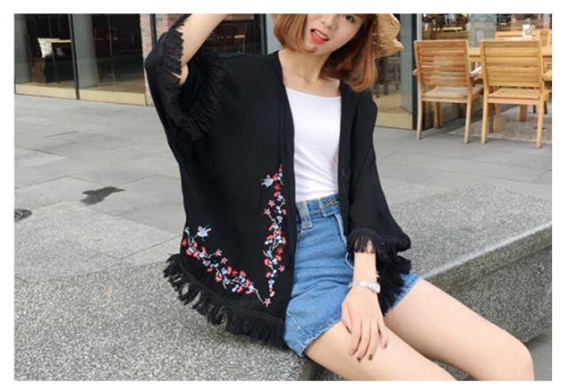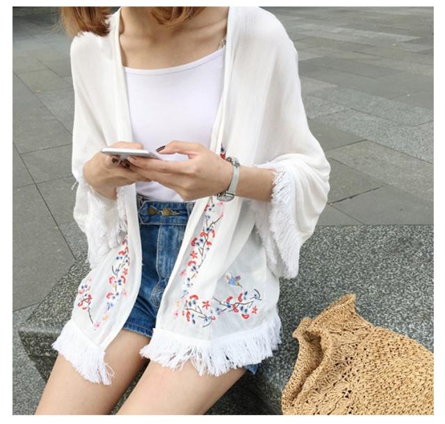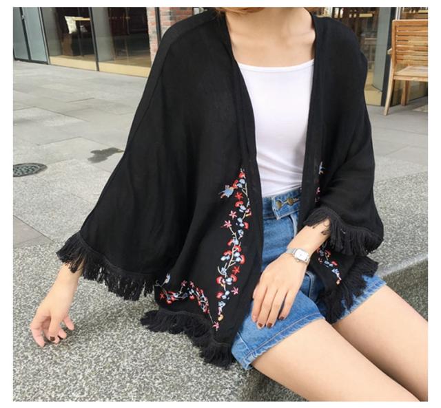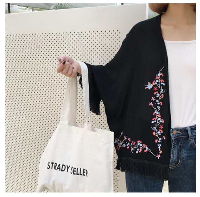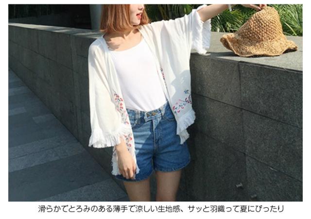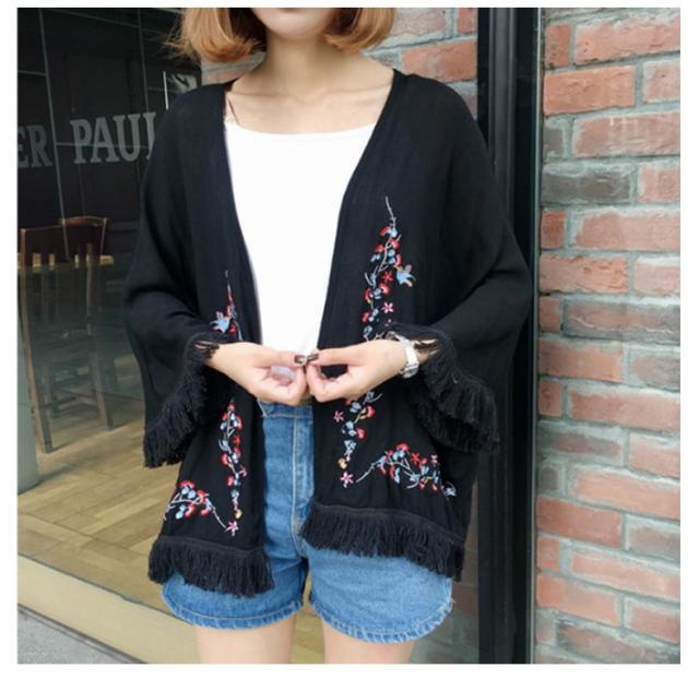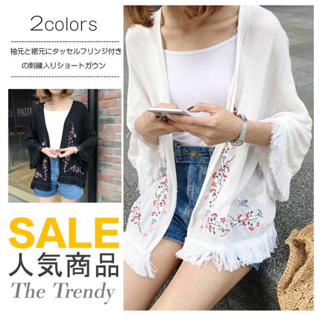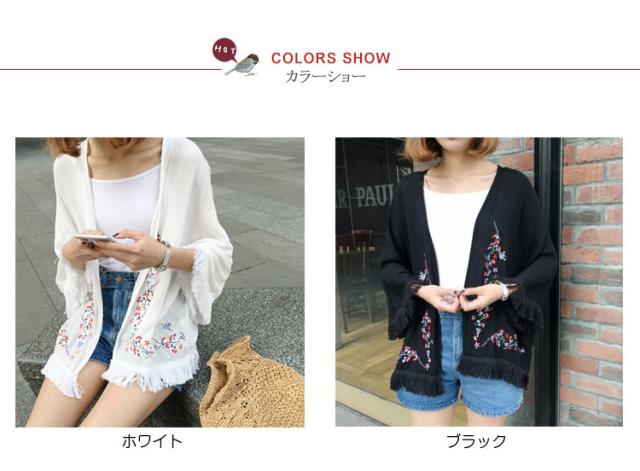ショートカーディガン 刺繍入り ガウン レディース 羽織る タッセル ボヘミア