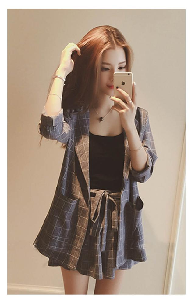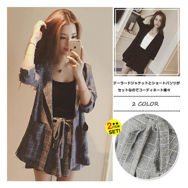 上下セットアップ レディース テーラードジャケット チェック柄 ハーフパンツ 春