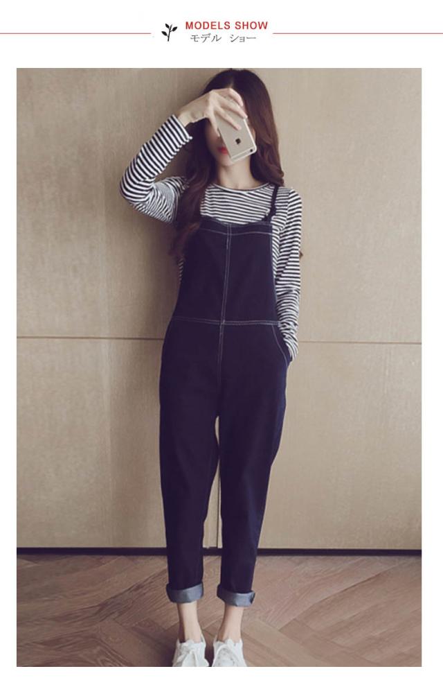 デニムサロペット レディース サスペンダーパンツ クロップド丈 オールインワン