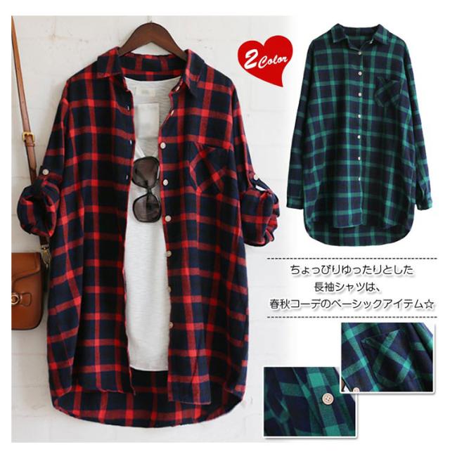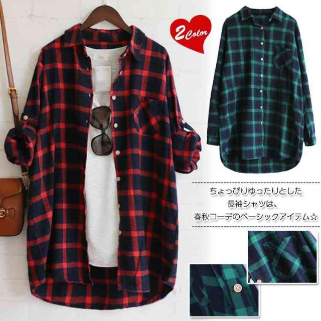 チェックシャツ レディース シャツチュニック 長袖 ゆったり トップス ブラウス 春秋 カジュアル 重ね着コーデにピッタリ ボーイッシュ ギンガムチェック